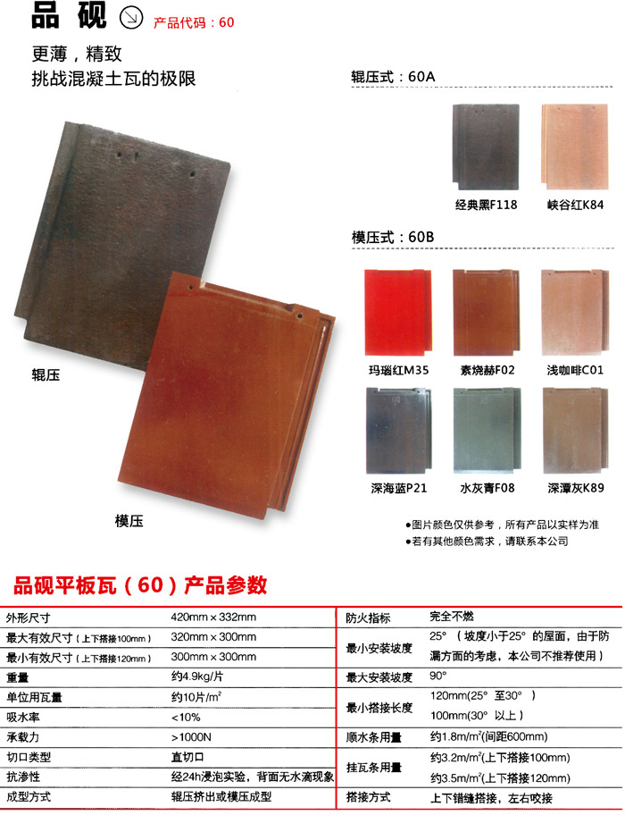 材料。先分辨著色層是混凝土還是漆料?;炷嗤敛释呱仙绞接卸黄湟唬翰释咧珜邮腔炷僚c有機顏料、環(huán)氧樹脂及二氧化硅石料所組成,薄厚在0.5毫米上下。它粘合力強(與瓦另外制做)耐老化一般,歷經一定階段的風吹日曬非常容易退色。舊式制瓦和中小型瓦廠絕大多數用這類方式上色,緣故是低成本;其 二:選用漆料噴漆,噴漆上色艷麗,一般噴漆干膜薄厚約在35um之上,經歷十數年的應用,久不掉色不脫落。
