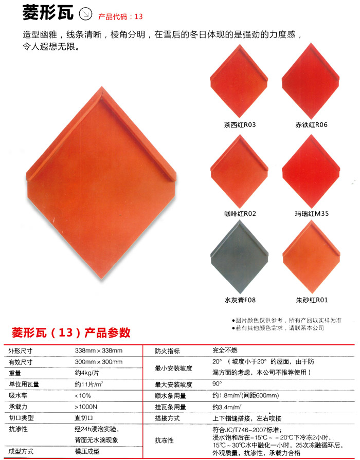 產(chǎn)品名稱: 菱形法式平瓦